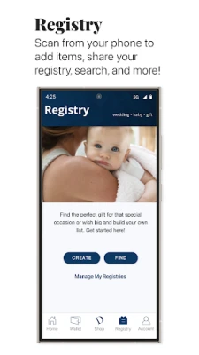 • Wish big! Scan from your phone to add items, share your registry, and more!
