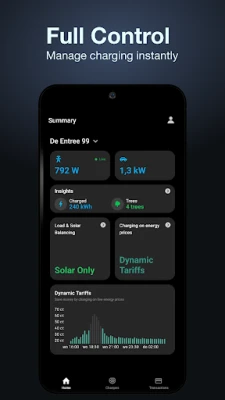 Take Total Control of your EV charging. Our intelligent app is engineered to save you money, maximize green energy, and ensure home safety. Use Dynamic Tariffs to automatically charge when energy prices are lowest, or utilize Load & Solar Balancing to efficiently manage free, self-generated power. Enjoy the new Charger Overview for remote lock/unlock, start/stop control and view live usage insights on one clean screen.