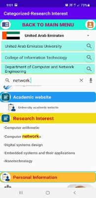 As a starting point, this version of our application covers information about researchers and their research interest of UAEU , and we are working in expanding our database to including all universities around the world.
