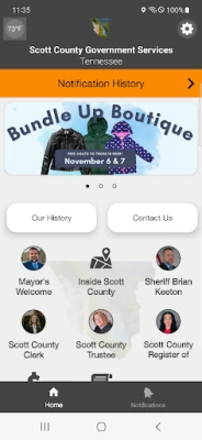 The Scott County Government (TN) mobile application is an interactive app developed to help improve communication with area residents. The app allows residents to connect with the Scott County Government including the Mayor’s office, the Sheriff’s office, the County Clerk’s office, the County Registrar of Deeds, and many more interactive features.