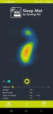 Place the flexible sensor on your mattress, under your hip area and track the pressure distribution and movements while sleeping.