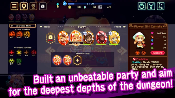 Adding jewels to your party activates powerful symbol abilities. Mix and match the colors and symbols of the jewels you encounter to activate a variety of effects and build your own unique team!