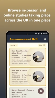 Researchers and people in general interested in research are trying to solve a two-sided problem. Researchers across all industries actively seek participants for their largely in-person research studies. Many people interested in research actively seek out opportunities to engage in these research studies and the wider research community. However, there’s no aggregate platform that can advertise these research studies, supply the number of participants needed per study and provide access to the wider research community.